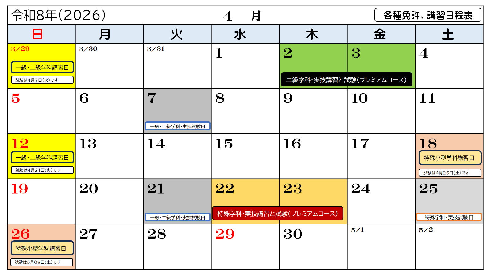 ■ 講習及び試験日程表↓ |