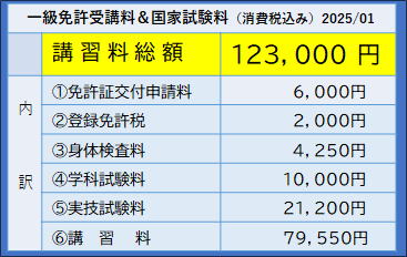 ■下記は一級小型船舶免許(進級))受講の場合の講習料&国家試験料(税込み)