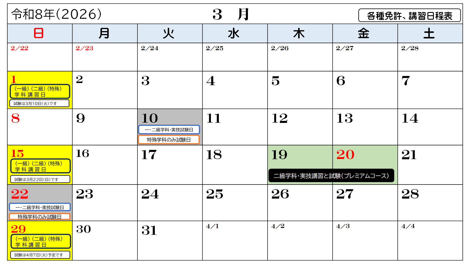 ■ 講習及び試験日程表↓ |
