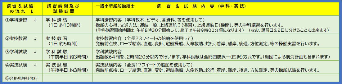 ■下記は一級小型船舶免許(進級))受講の場合の講習料&国家試験料(税込み)