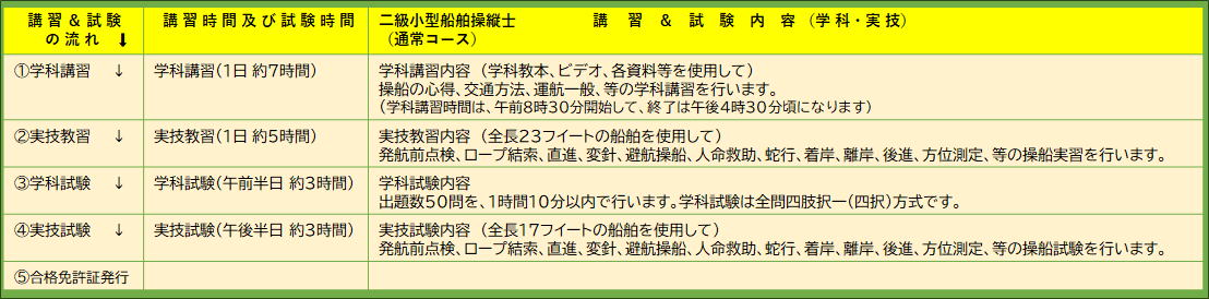 ■下記は二級小型船舶免許(進級)受講の場合の講習料&国家試験料(税込み)